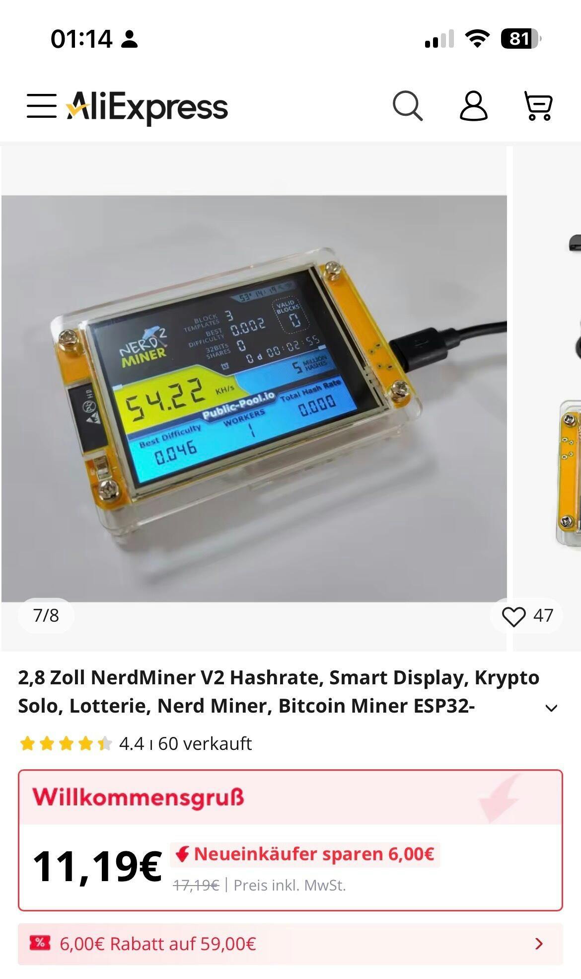 Für weniger als den Preis eines Kaugummis hast du ein Gerät, das lautlos, aber kontinuierlich Chancen auf die 3,125 BTC-Blockbelohnung sammelt – Tag und Nacht.*